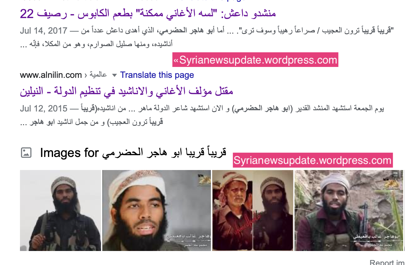 1- Abu Hajar al-Hadrami was killed in al-Yemen by a drone strike while in the port of al-Mukalla, the city where he was born in 1986. He was not killed in Syria or al-Iraq, although he was there not too long ago as evidenced by the infamous Ya-Asib al-Ra’s Wennak video singing with Maher Misha’al and others. It looked that he was in Syria as a tour to see what is going on.